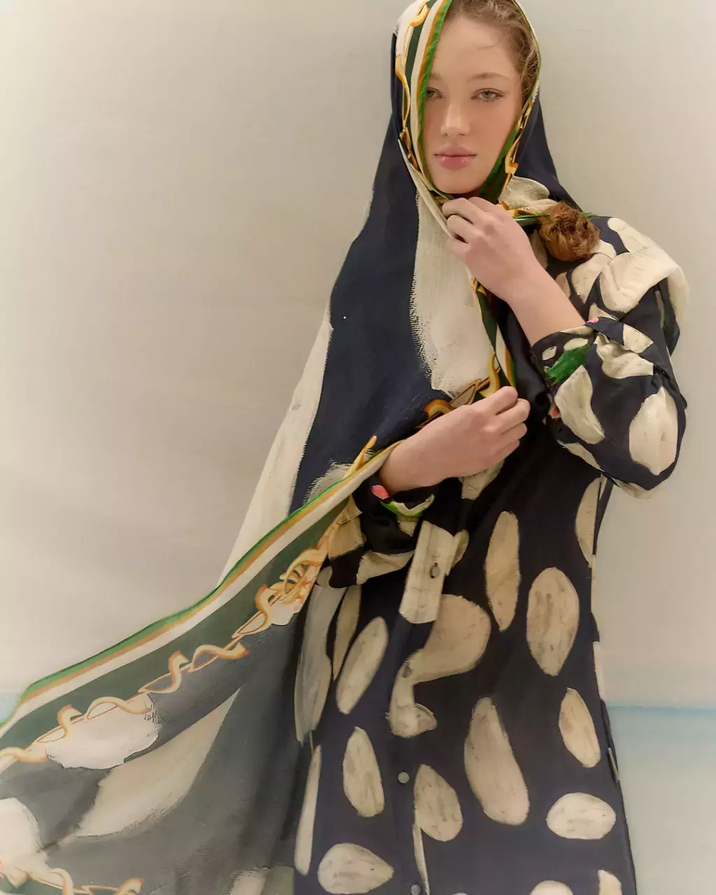 Feito em voil de viscose italiana com fios superfinos que remetem a seda, o Lenço 145 traz a obra "Chocolate", da artista extraordinária Clara Woods.