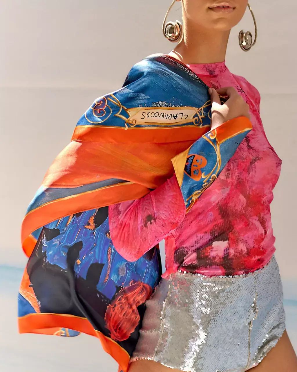Um lenço, várias formas de usar: no cabelo, na cintura, como top, na bolsa, no pescoço.