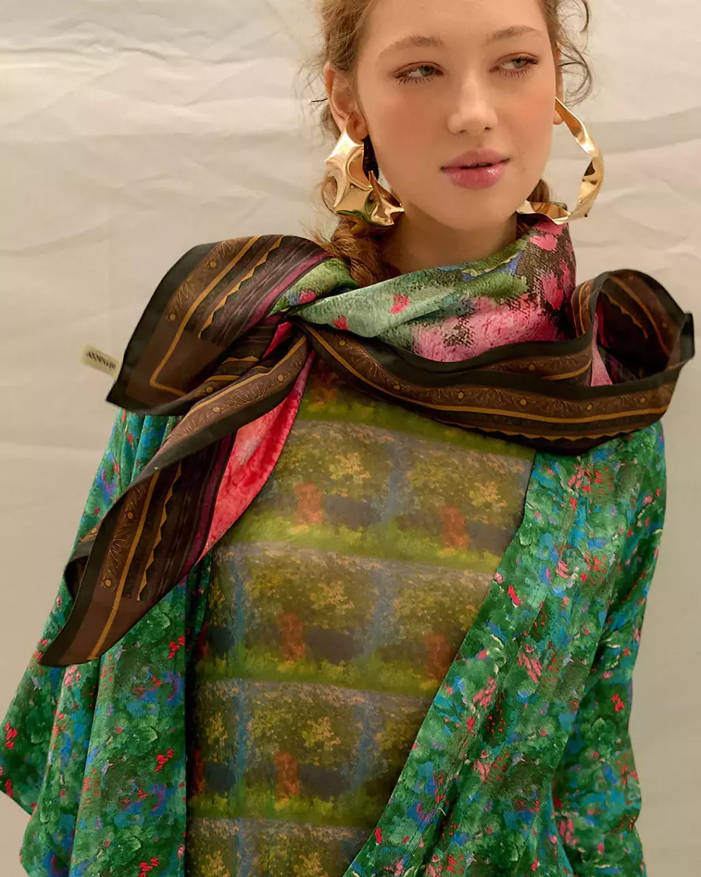 Um lenço, várias formas de usar: no cabelo, na cintura, como top, na bolsa, no pescoço.